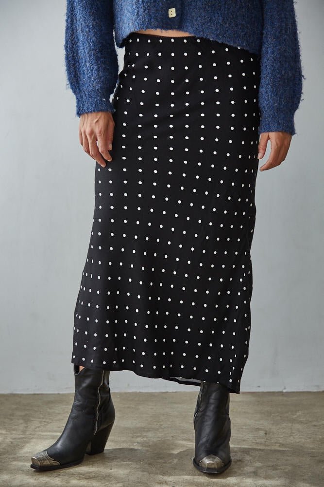 Woven Lyocell Polka Dot Flare Midi Skirt With Polyester Lining