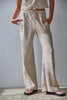 Knit Polyester Cotton Striped Flare Pants With Side Pockets Waist Tie Strap
